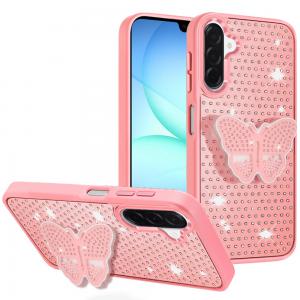 For Samsung A17 5G Lavished Floral Butterfly Bling Stones Hybrid Case - Pink...