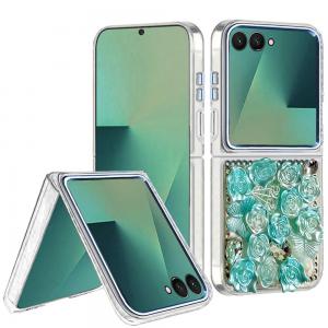 For Samsung Z Flip 7 Muti-Color Rose Bling Stones Ornaments Case - Green...