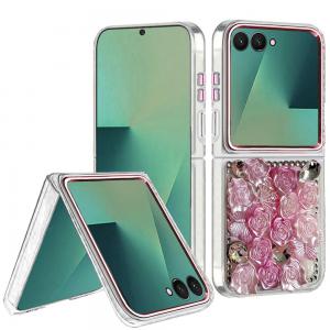For Samsung Z Flip 7 Muti-Color Rose Bling Stones Ornaments Case - Pink...