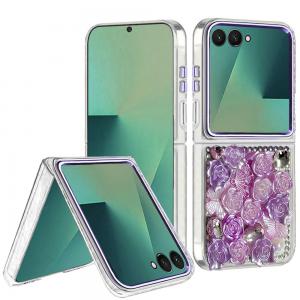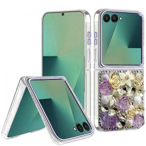 For Samsung Z Flip 7 Muti-Color Rose Bling Stones Ornaments Case - Purple...