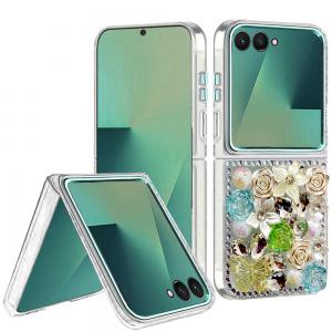 For Samsung Z Flip 7 Muti-Color Floral Bling Stones Ornaments Case - Green...