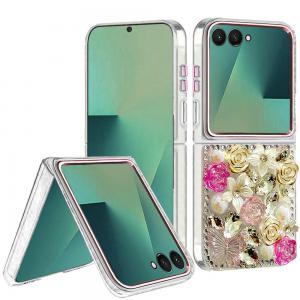 For Samsung Z Flip 7 Spectacular Full Bling Stones Glitter HQ Hybrid Floral Seri...