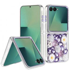 For Samsung Z Flip 7 Muti-Color Floral Bling Stones Ornaments Case - Purple...
