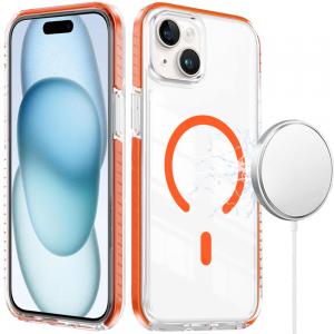 For iPhone 15 Transparent Matching Color Magnetic Ring Hybrid - Cosmic Orange...