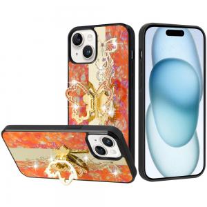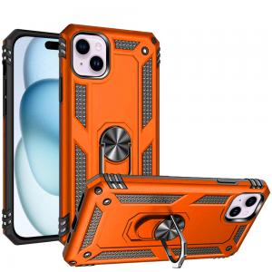 For iPhone 15 Ring Magnetic Kickstand Hybrid Case Cover - Cosmic Orange...