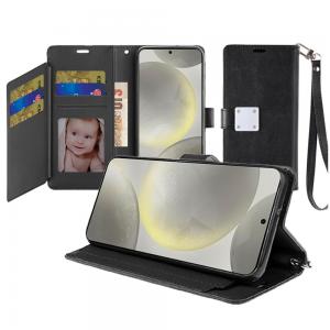 For Samsung Galaxy s24 Flap Flap Magnetic Ring Transparent Hybrid - Black...