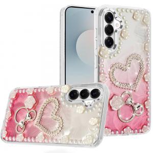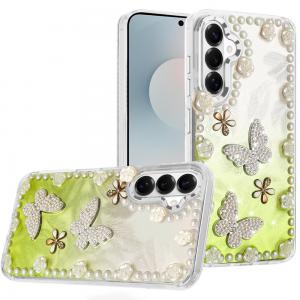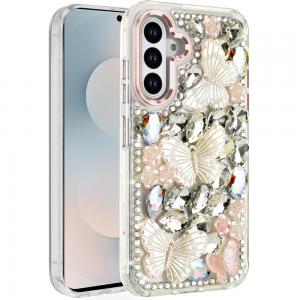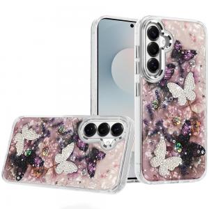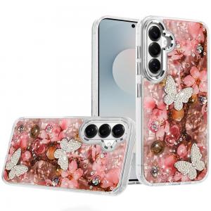 For Samsung s26 Lavished Floral Butterfly Bling Stones Hybrid Case - Pink...