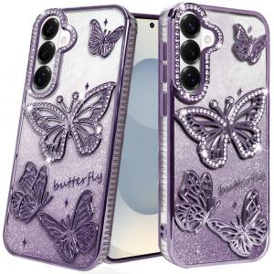 For Samsung s26 Butterfly Freedom Shimmer Glitter Thick TPU Case Cover - Purple...