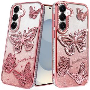 For Samsung s26 Butterfly Freedom Shimmer Glitter Thick TPU Case Cover - Rose Go...