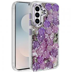 For Samsung s26 Lavished Floral Butterfly Bling Stones Hybrid Case - Purple...