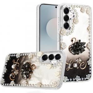 For Samsung s26 Shimmer Glitter Floral Design Thick TPU Case Cover - Black...