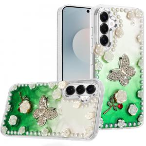 For Samsung s26 Muti-Color Floral Bling Stones Ornaments Case - Green...