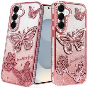 For Samsung s26 Plus Lavished Floral Butterfly Bling Stones Hybrid Case - Rose G...