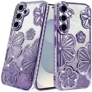 For Samsung s26 Plus Lavished Floral Butterfly Bling Stones Hybrid Case - Purple...