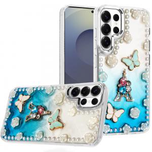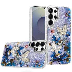 For Samsung s26 Ultra Lavished Floral Butterfly Bling Stones Hybrid Case - Blue...