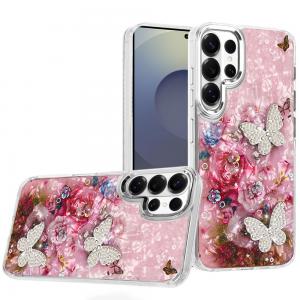 For Samsung s26 Ultra Lavished Floral Butterfly Bling Stones Hybrid Case - Pink...