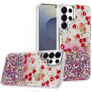 For Samsung s26 Ultra Shimmer Glitter Floral Design Thick TPU Case Cover - Purpl...