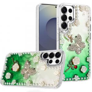 For Samsung s26 Ultra Muti-Color Floral Bling Stones Ornaments Case - Green...