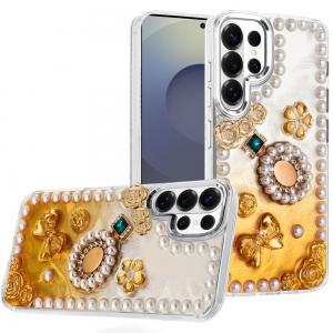 For Samsung s26 Ultra Shimmer Glitter Floral Design Thick TPU Case Cover - Gold...