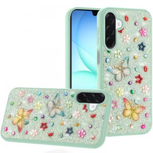 For Samsung A17 5G Muti-Color Floral Bling Stones Ornaments Case - Green...