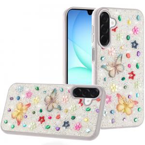 For Samsung A17 5G Lavished Floral Butterfly Bling Stones Hybrid Case - Silver...