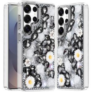For Samsung s26 Ultra Shimmer Glitter Floral Design Thick TPU Case Cover - Black...