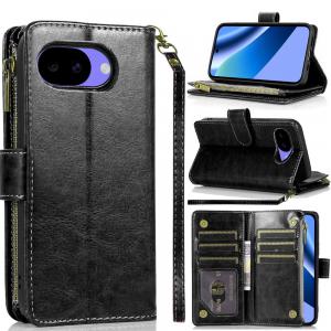 For iPhone 13/14 Luxury Wallet Card ID Zipper Money Holder Case Cover - Black...
