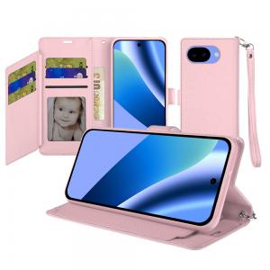 For iPhone 13/14 Luxury Wallet Card ID Zipper Money Holder Case Cover - Rose Gol...