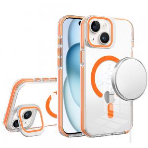 For iPhone 13/14 Metal Chrome Kickstand [Magnetic Circle] Shockproof Matching Ca...