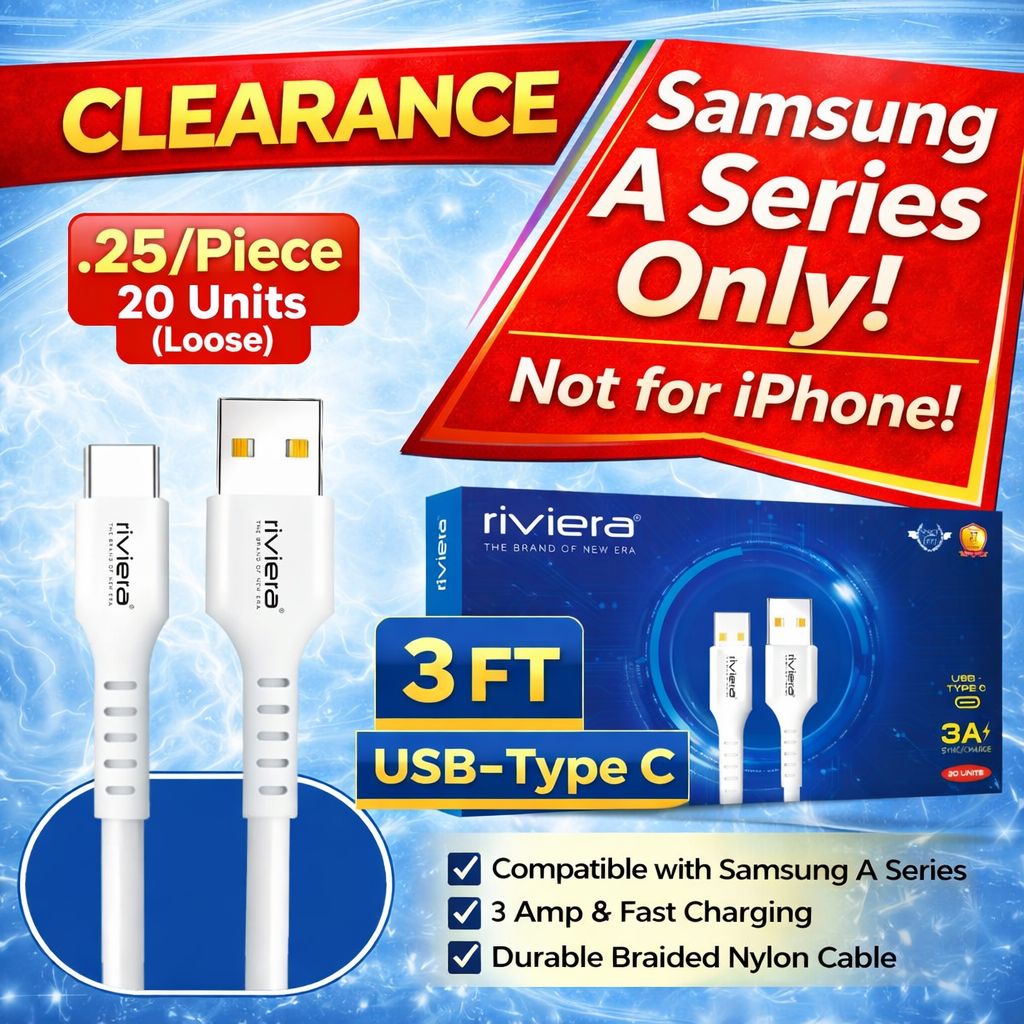 Pack of 20 // CLEARANCE [Samsung A Series Only] [Not for iPhones] - 3FT [USB - Type C (PD)] - White (1)