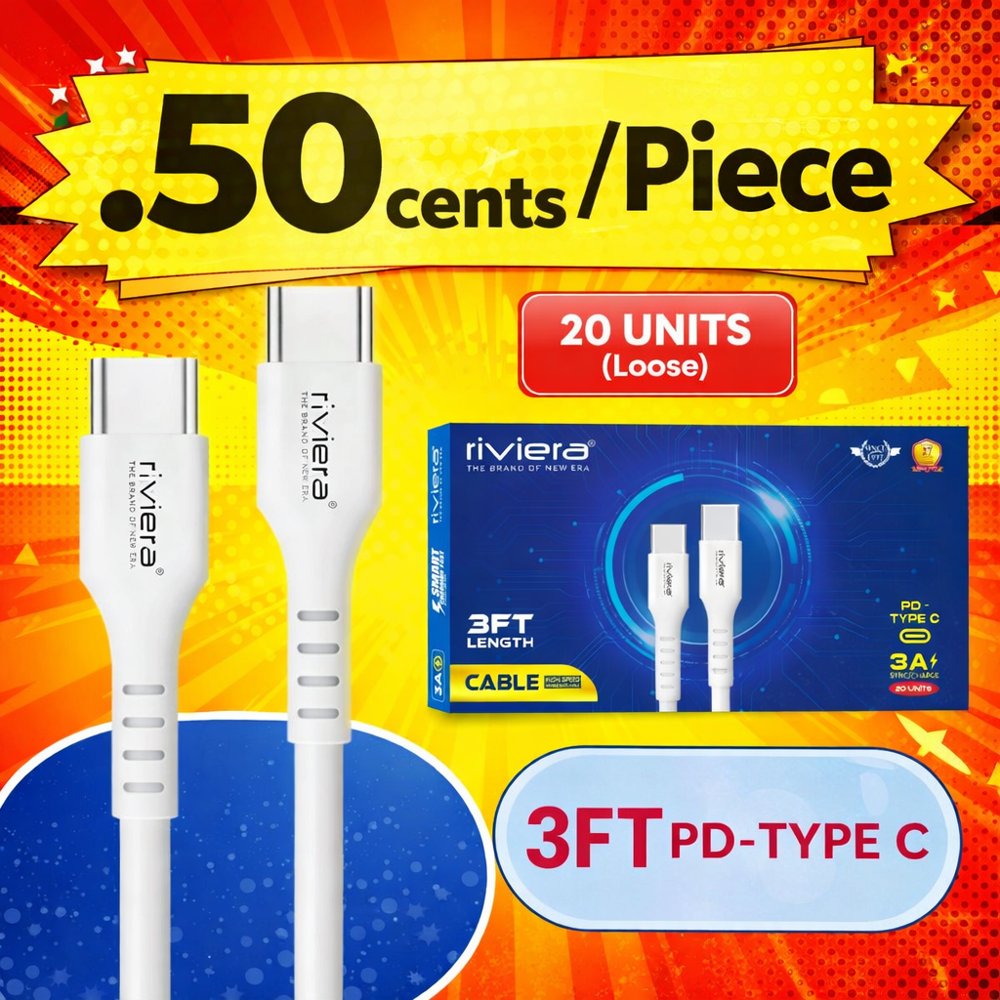 .50 cents Each Pack of 20 LOOSE Cable in CounterDisplay Box - 3FT Fast Charging Cable [Type C - Type C (PD)] - White (4)