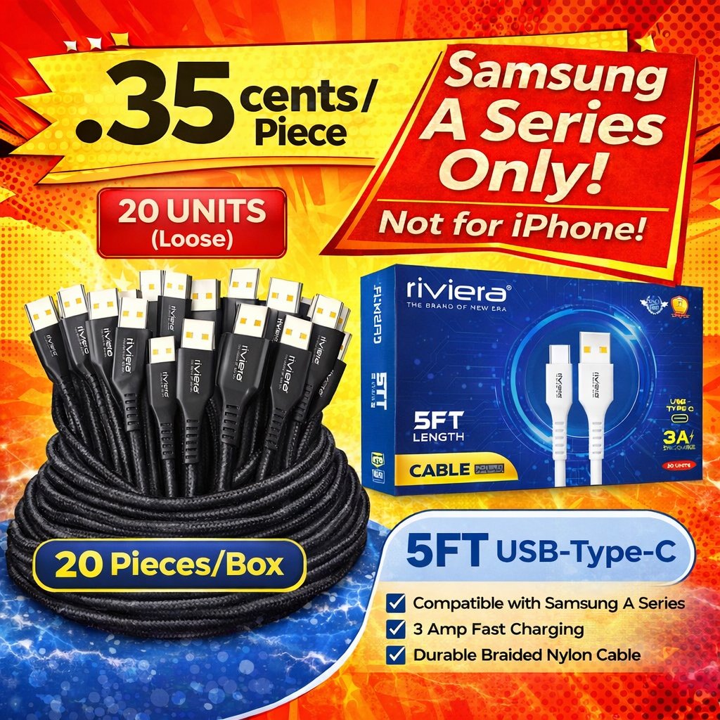 Pack of 20 // CLEARANCE [Samsung A Series Only] [Not for iPhones] - 5FT [USB - Type C (PD)] - Black (8)