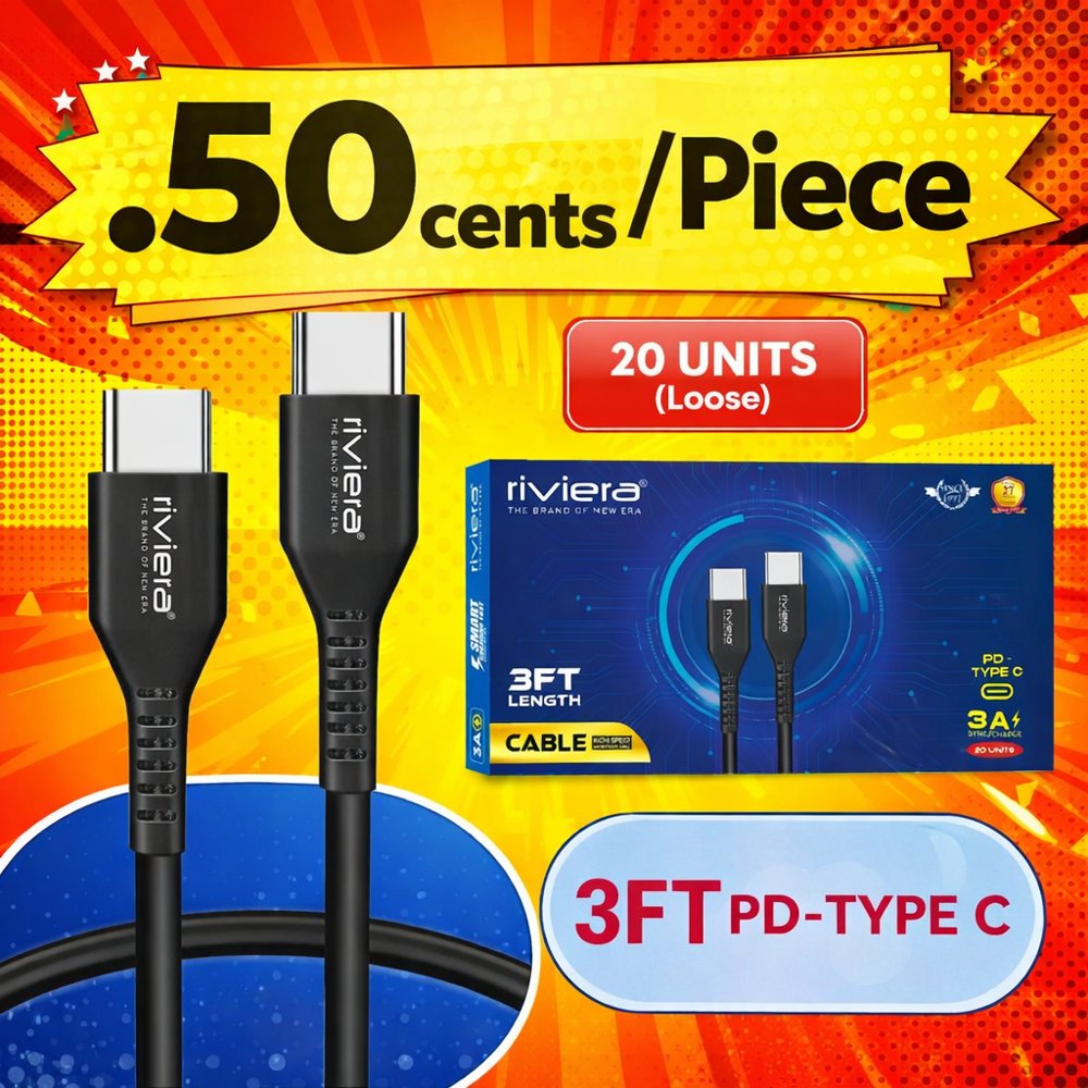 .50 cents Each Pack of 20 LOOSE Cable in CounterDisplay Box - 3FT Fast Charging Cable [Type C - Type C (PD)] - Black (10)