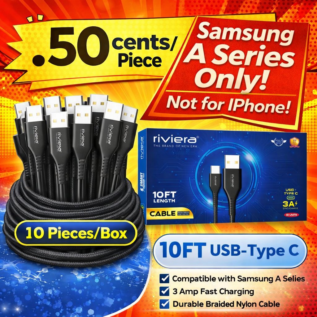 Pack of 10 // CLEARANCE [Samsung A Series Only] [Not for iPhones] - 10FT [USB - Type C (PD)] Nylon Braided - Black (15)