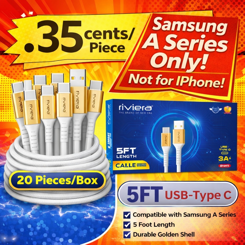 Pack of 20 // CLEARANCE [Samsung A Series Only] [Not for iPhones] - 5FT [USB - Type C (PD)] - White w/ Golden Shell (20)