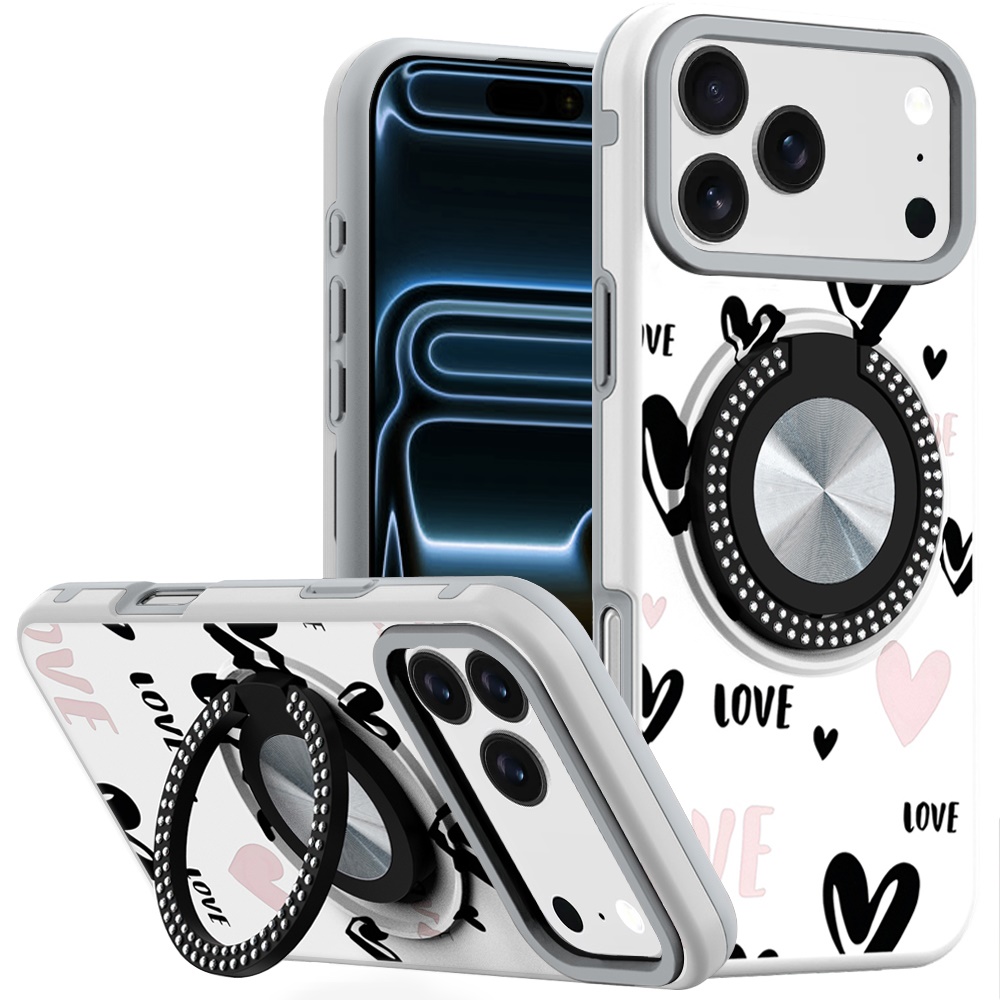 For iPhone 17 Pro Max Metal Diamond CD Pattern Design Matte Finished Hybrid with Rotational Ring [Car Mount Friendly] Case - 2