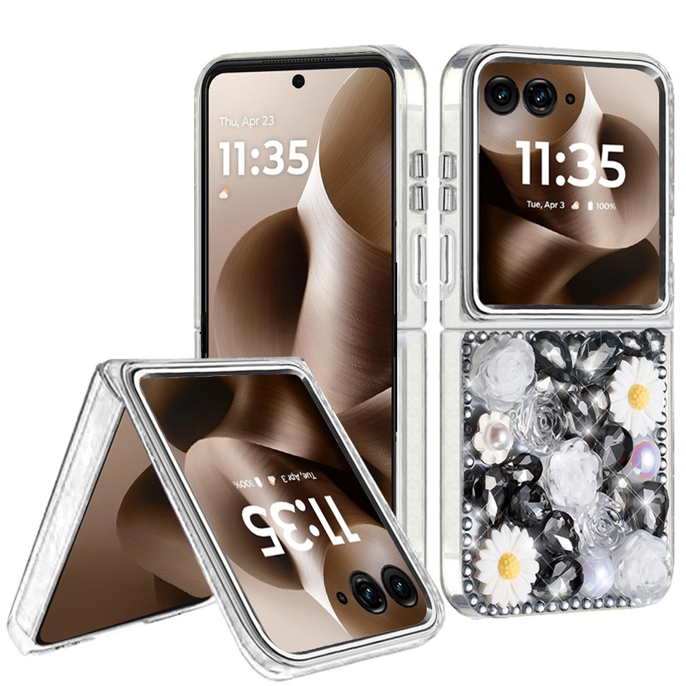 For Motorola Razr Ultra 2025 Spectacular Full Bling Stones Glitter HQ Hybrid Floral Series - Black