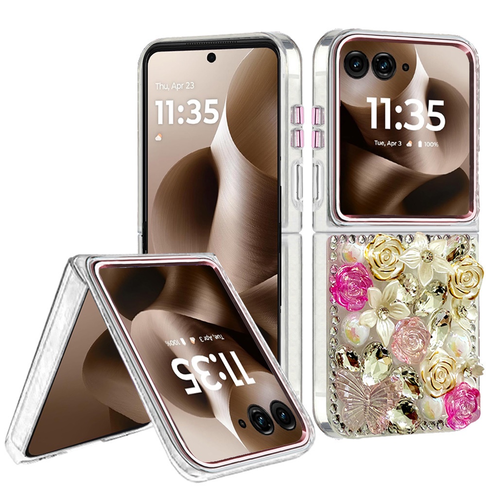 For Motorola Razr Ultra 2025 Muti-Color Rose Bling Stones Ornaments Case - Pink