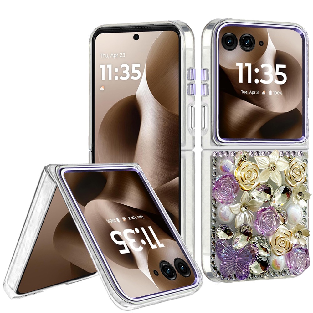 For Motorola Razr Ultra 2025 Muti-Color Rose Bling Stones Ornaments Case - Purple