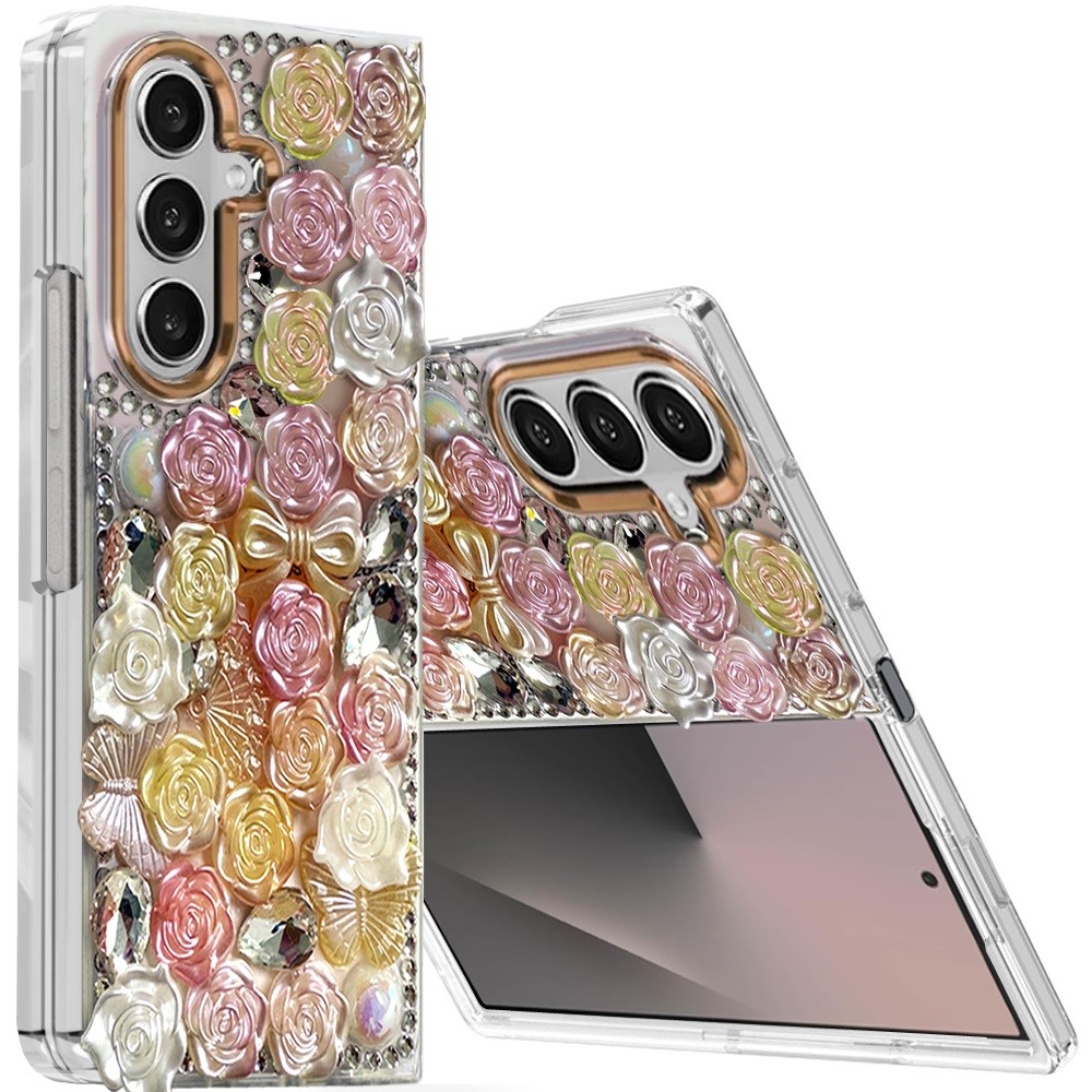 For Samsung Z Fold 7 Muti-Color Floral Bling Stones Ornaments Case - Orange
