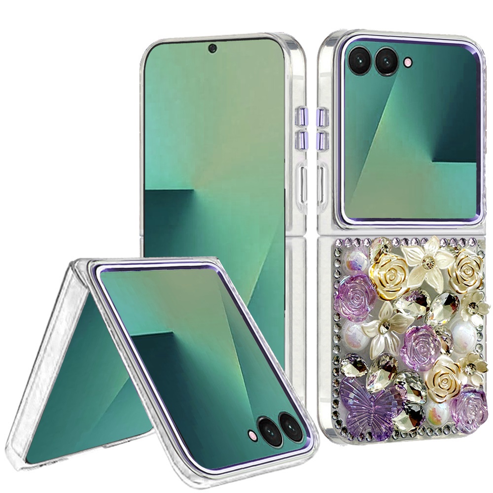 For Samsung Z Flip 7 Muti-Color Rose Bling Stones Ornaments Case - Purple
