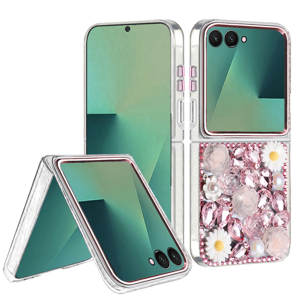 For Samsung Z Flip 7 Spectacular Full Bling Stones Glitter HQ Hybrid Floral Series - Pink