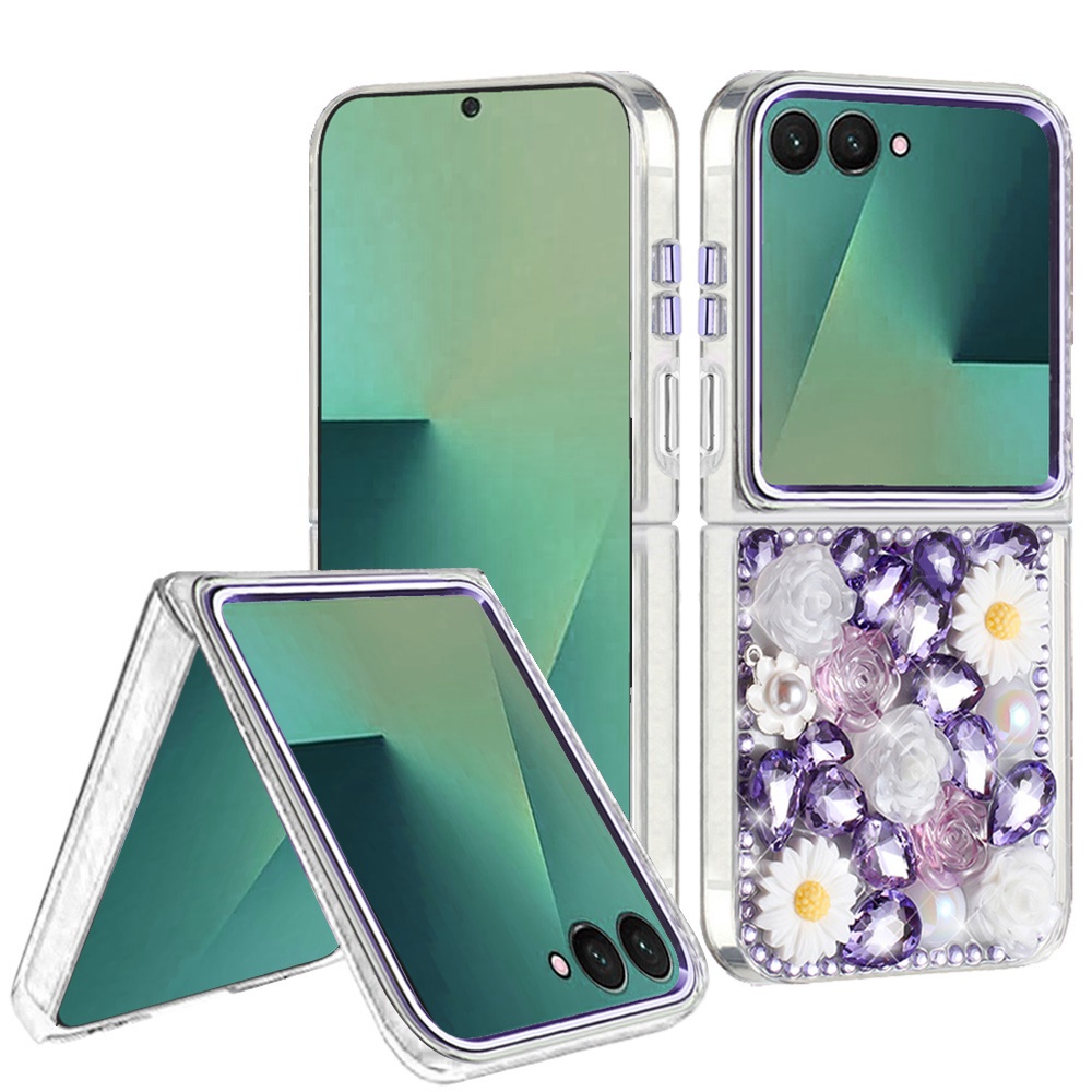 For Samsung Z Flip 7 Spectacular Full Bling Stones Glitter HQ Hybrid Floral Series - Purple