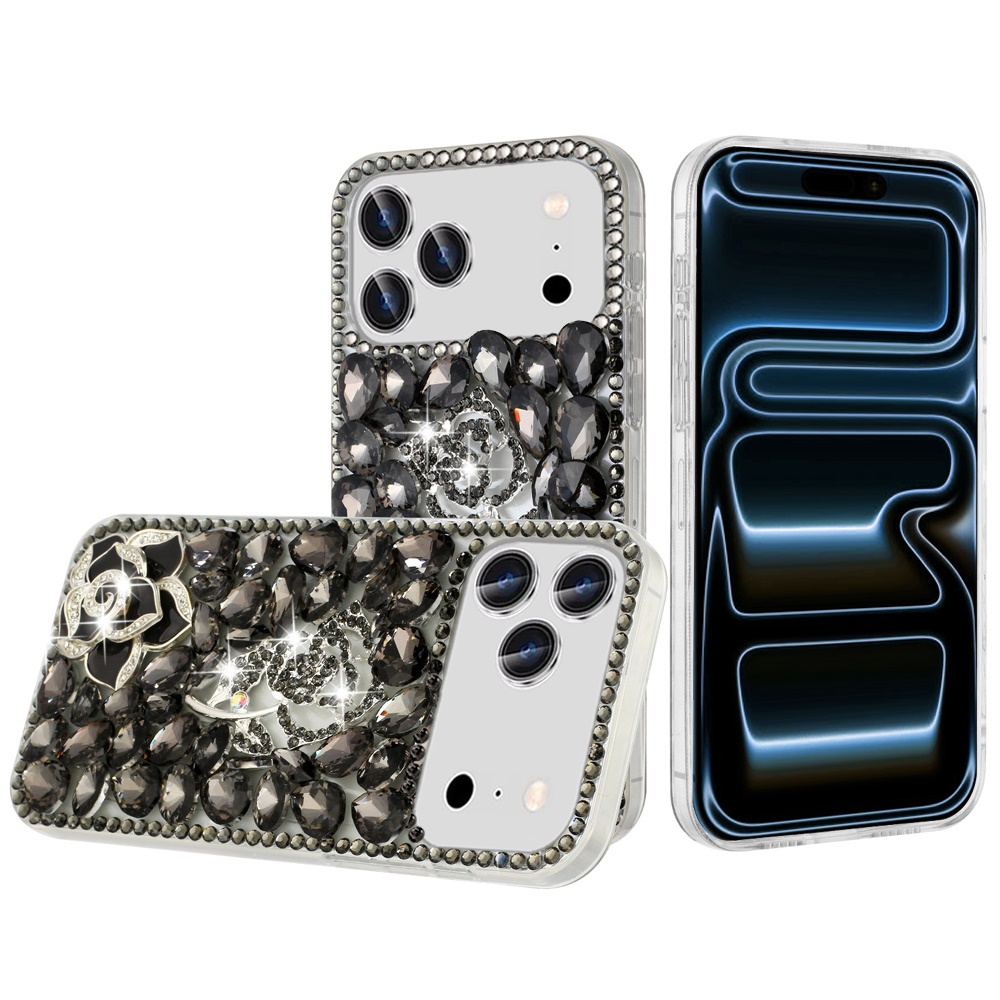 For iPhone 17 Pro Max Floral Full Diamond Bling Case Cover - Smoke
