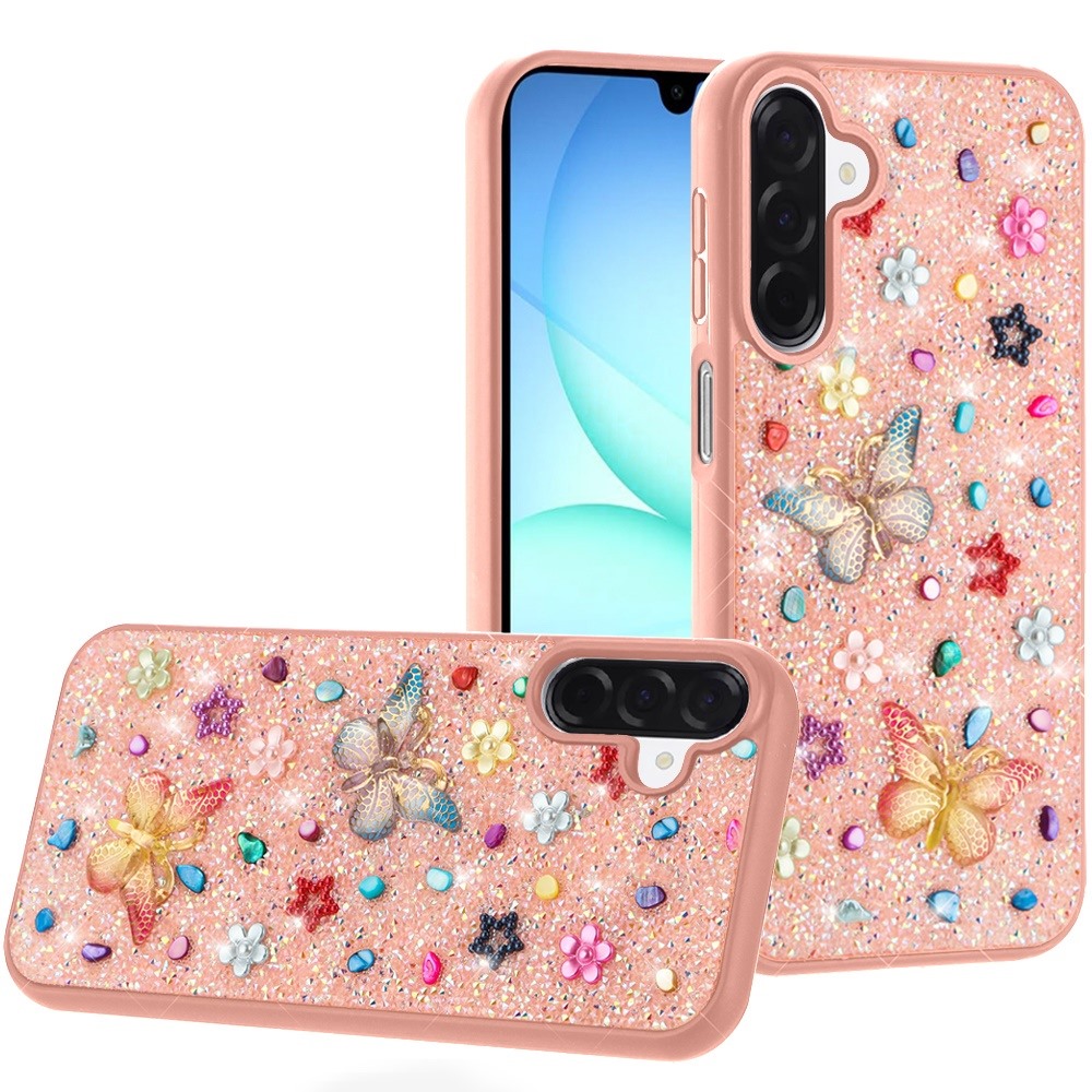For Samsung A17 5G Butterfly Ornaments Diamond Bling Glitter Hybrid Case - Light Pink