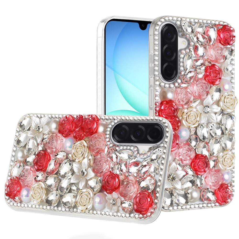 For Samsung A17 5G Rose Flower Full Diamond Bling Stones - Red