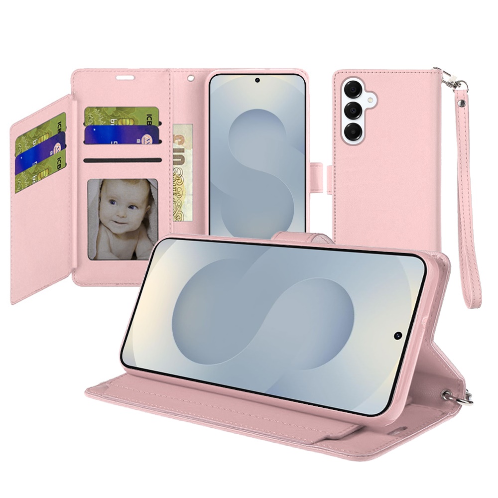 For Samsung s25 FE Wallet ID Card Holder Case Cover - Rose Gold