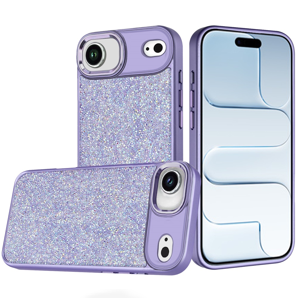 For iPhone 17 Air Crystal Glass Diamond with Metallic Buttons and Edges Hybrid Case - Dark Purple
