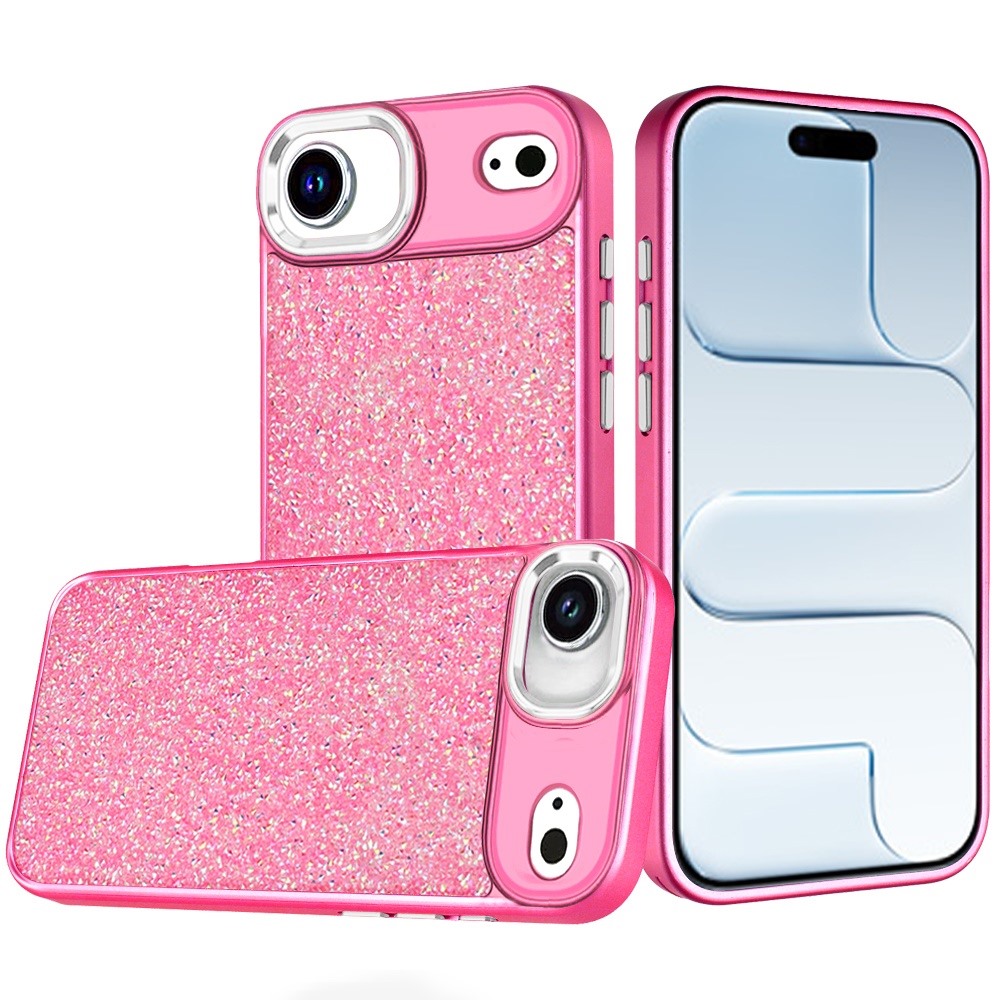 For iPhone 17 Air Crystal Glass Diamond with Metallic Buttons and Edges Hybrid Case - Hot Pink