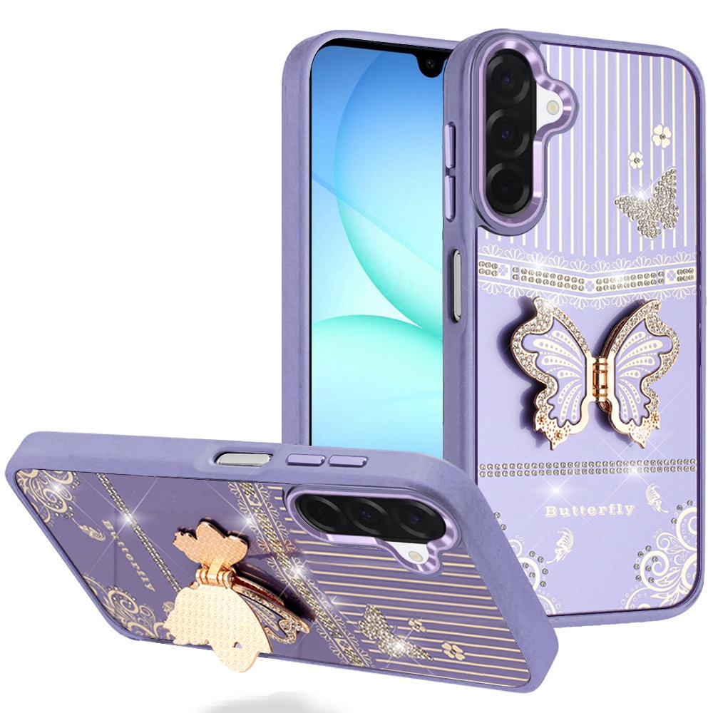 For Samsung A17 5G Splendid Glitter Butterfly Design Stand with Metallic Edges Hybrid Case - Dark Purple